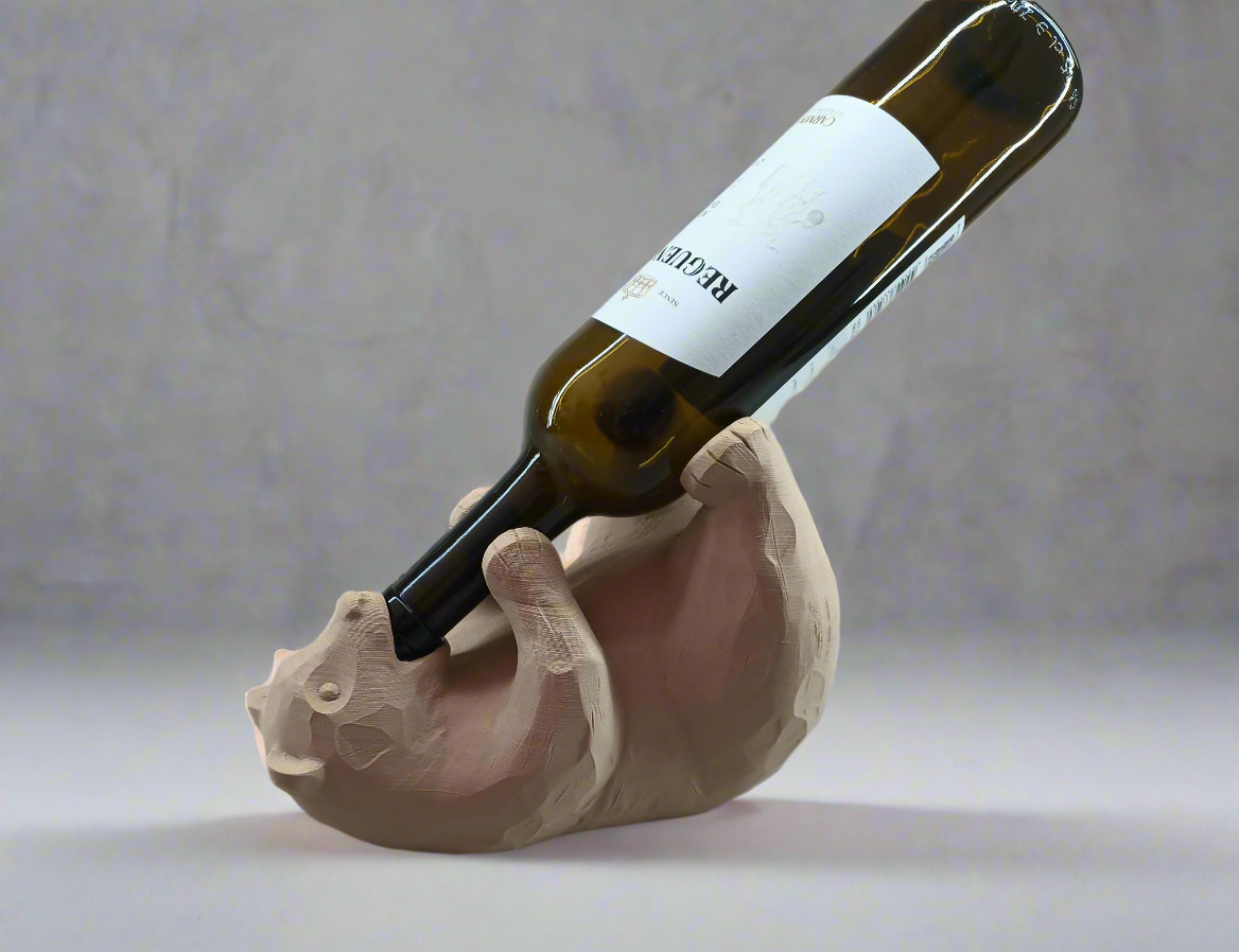 Apresentamos o nosso exclusivo suporte de garrafas em forma de urso deitado de costas, relaxado e a beber da garrafa, impresso em 3D com um design original e divertido. Este urso não só vai segurar as suas garrafas de vinho com segurança, como também vai adicionar um toque de personalidade e bom humor à sua decoração.